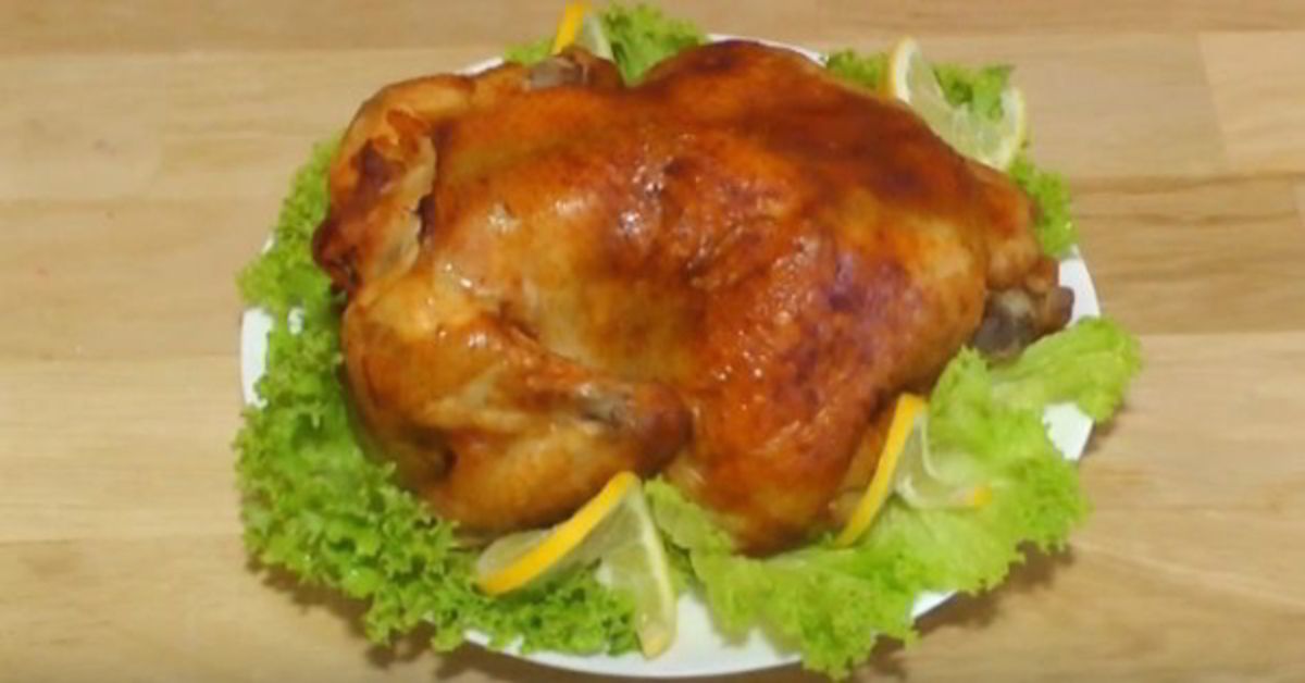 Rankovėje keptas viščiukas su aštriu padažu. Skanaus!
