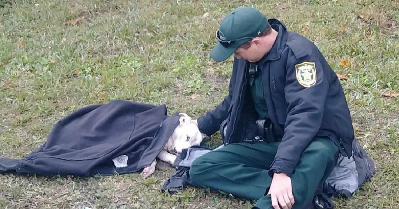 Kol atvyks pagalba, policininkas palaiko kompaniją partrenktam šuniui