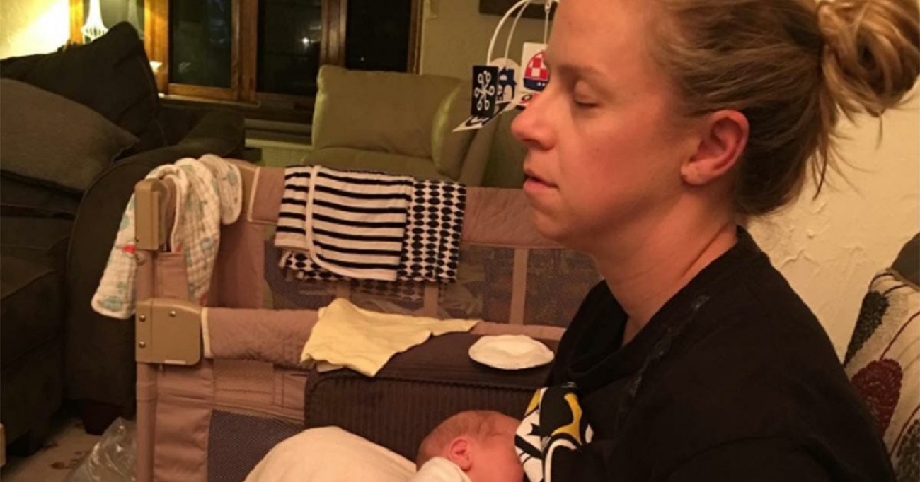 Vyras paskelbė nuotrauką, kurioje jo žmona užmigo maitindama krūtimi