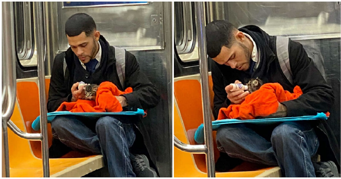 Moteris pastebėjo vyrą, maitinantį kačiuką iš buteliuko, o jo nuotrauka užkariavo internetą