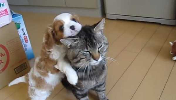 Labai miela: mažasis šuniukas nori žaisti, o ši katė tuo visai nesižavi!