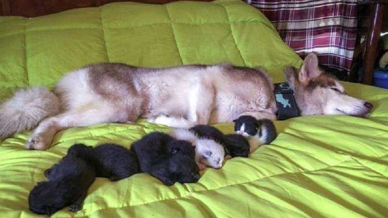 Šuo Haskis išgelbėjo net 7 kačiukų gyvybes!