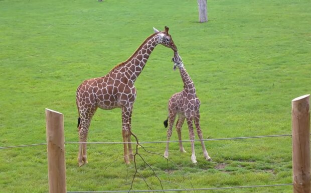 Žirafos mažylis ištirpdė milijonų žmonių širdis: jis pirmą kartą susitiko su savo tėčiu