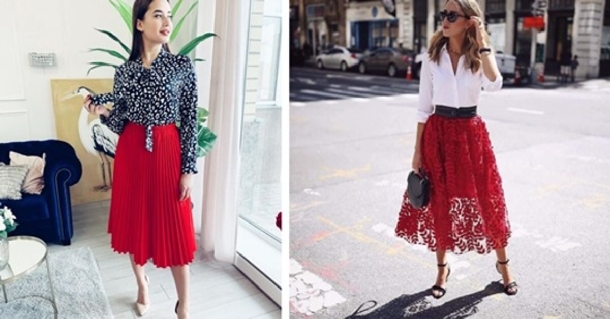 Raudono sijono ir palaidinių deriniai. Pasisemkite idėjų ir atrodykite stulbinančiai!