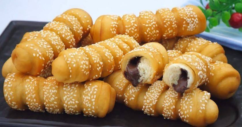 Saldūs rageliai su šokoladu iš mielinės tešlos