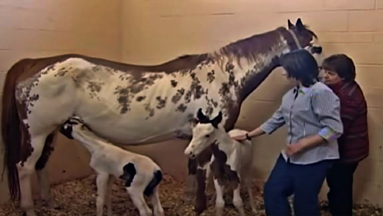 Sena nėščia kumelė įveikė sunkumus ir atsivedė retus bei sveikus dvynius