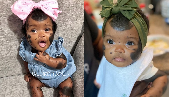 Mergaitė serga reta odos liga: gimė su didelėmis tamsiomis dėmėmis ant viso kūno