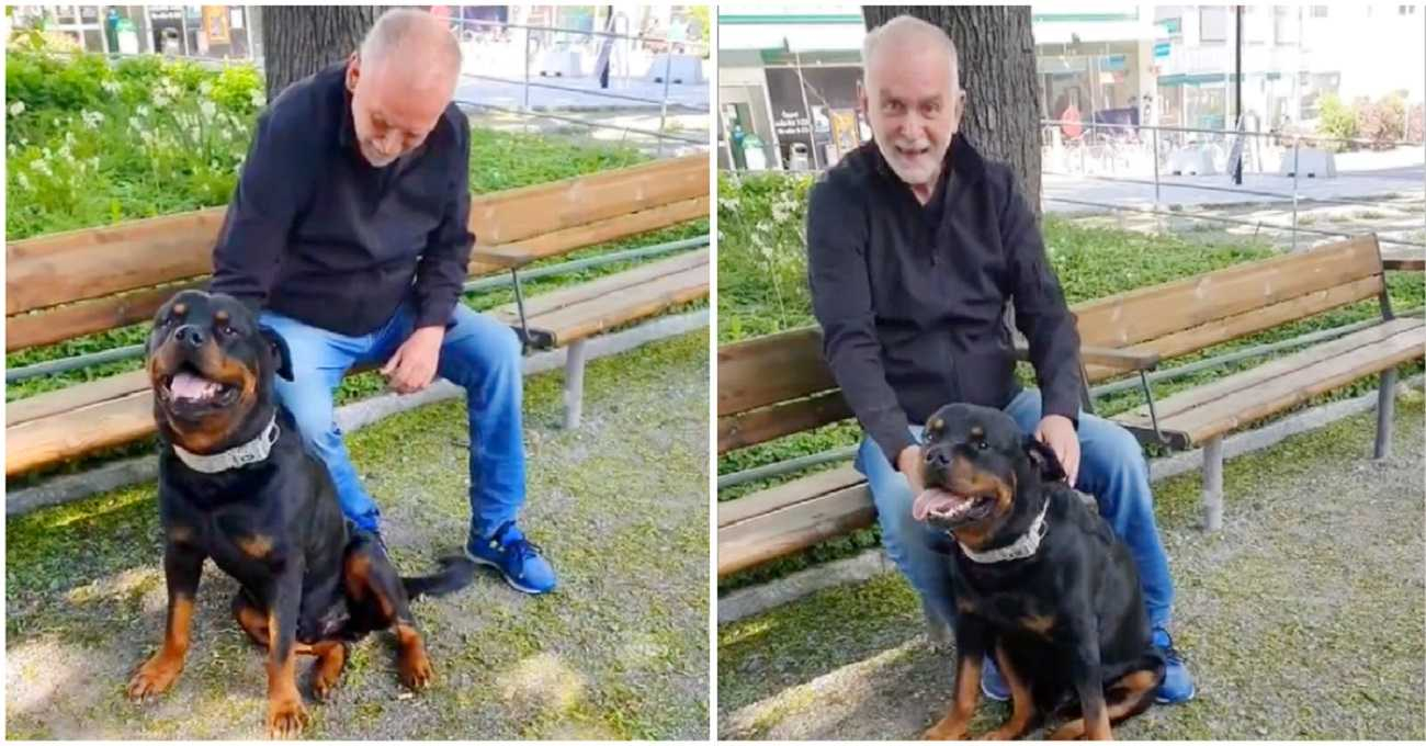 Draugiškas rotveileris parke nudžiugino senuką, kuris ką tik buvo praradęs savo šunį