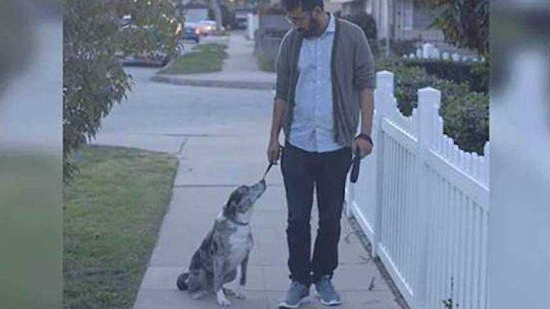 Vyras priglaudžia seną šunį. Vieną dieną, eidamas, augintinis sustoja ir nori jam kai ką pasakyti