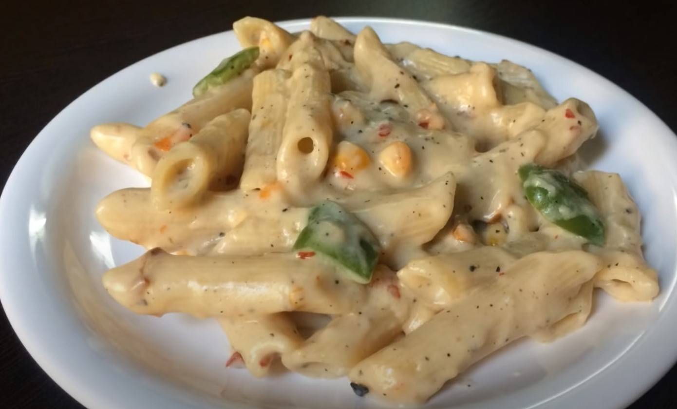 Paprastai paruošiami makaronai su grietinėlės padažu. Išbandykite šiuos greitai paruošiamus pietus!
