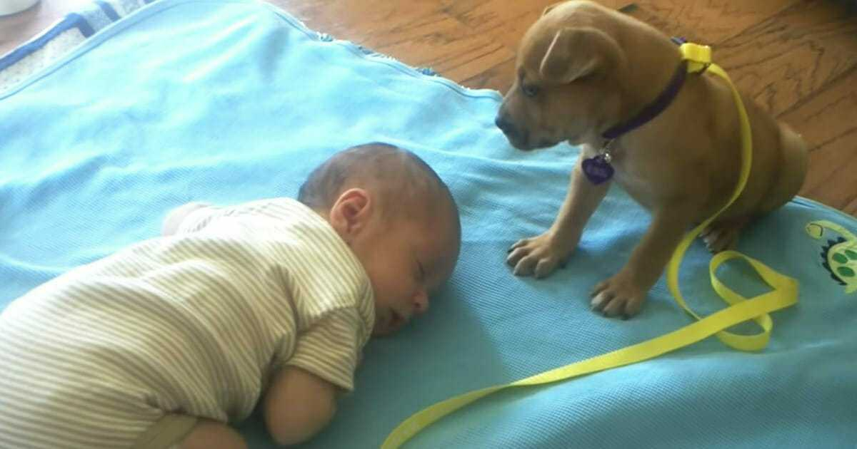 Vaikas užmiega, o mama įamžina šuniuko elgesį