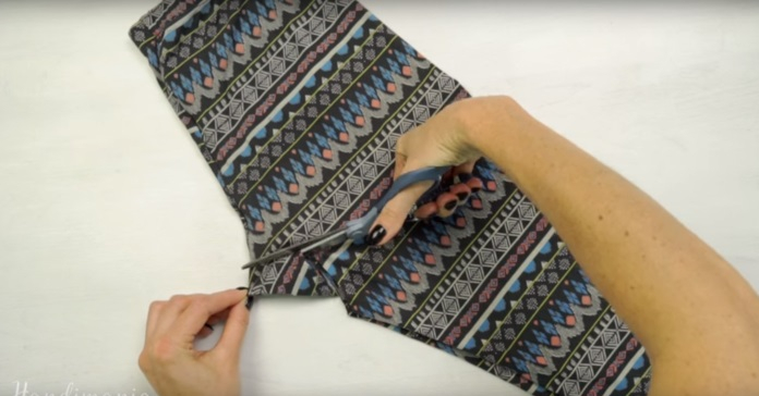 Ji iškerpa skylutes senose aptemptose kelnėse. Koks bus rezultatas? Tiesiog puiku!