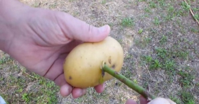 Ji įkiša rožių kotelį į bulvę. Koks bus rezultatas po kelių savaičių? Sodas bus iš ties labai gražus!