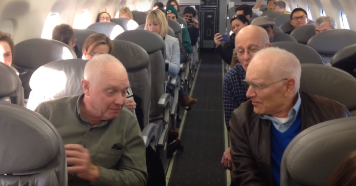 Lėktuvo keleiviai pasiima savo mobiliuosius telefonus ir pradeda filmuoti, kai senukai tai padaro!