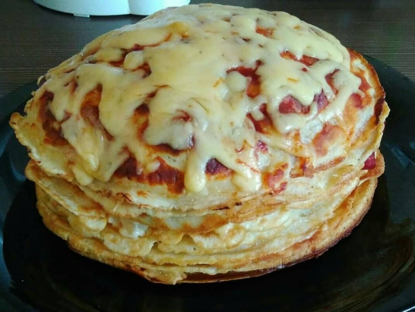 Subtilus blynų pyragas su kumpiu, sūriu ir žolelėmis. Galima greitai paruošti ir tai yra nepaprastai skanu!