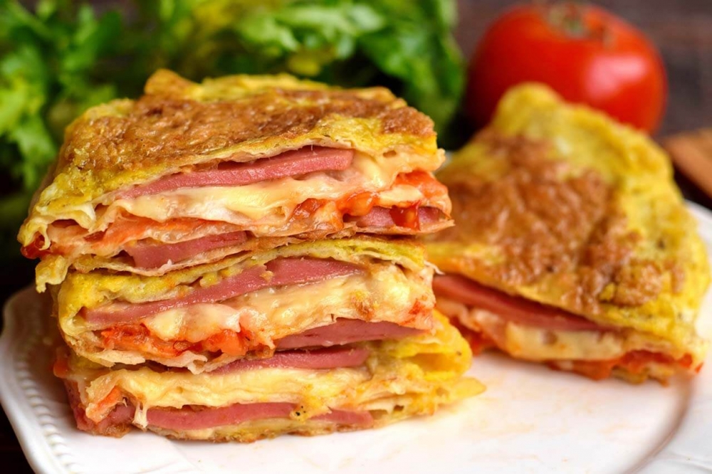 Labai įdomūs ir greiti pusryčiai iš lavašo su dešra ir pomidorais