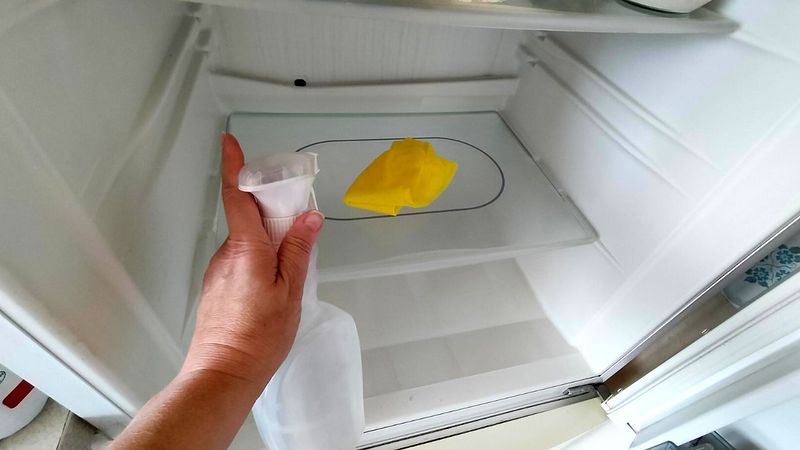 Įpilkite į vandenį ir išpurkškite šaldytuvą. Išnyks dėmės ir nemalonus kvapas