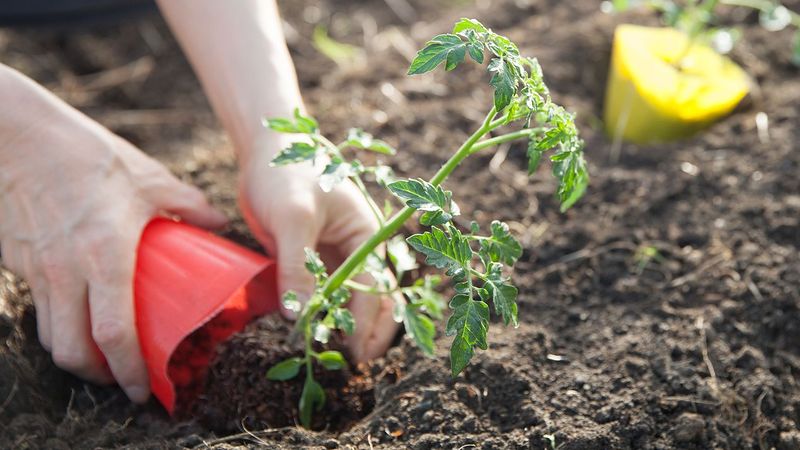 Prieš sodinimą po kiekvienu pomidorų daigeliu užkaskite natūralių trąšų. Jie taps atsparesni ligoms ir kenkėjams