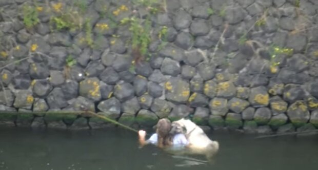 Paauglė per potvynį išgelbėjo savo šunį plaukdama iki namo stogo