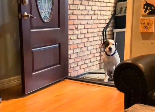 Paklydęs šuo ilgai nesiryžo peržengti slenksčio, nes negalėjo patikėti, kad gali užeiti į namus