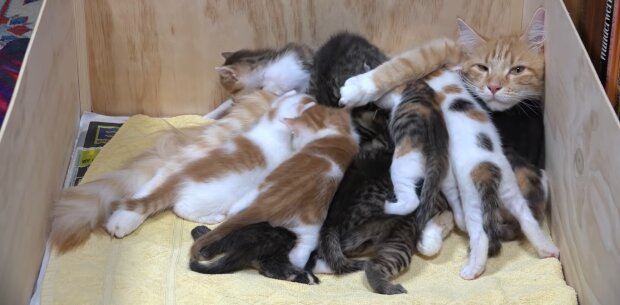 Besilaukianti benamė katė suranda puikius namus, kad galėtų auginti savo būsimas atžalas