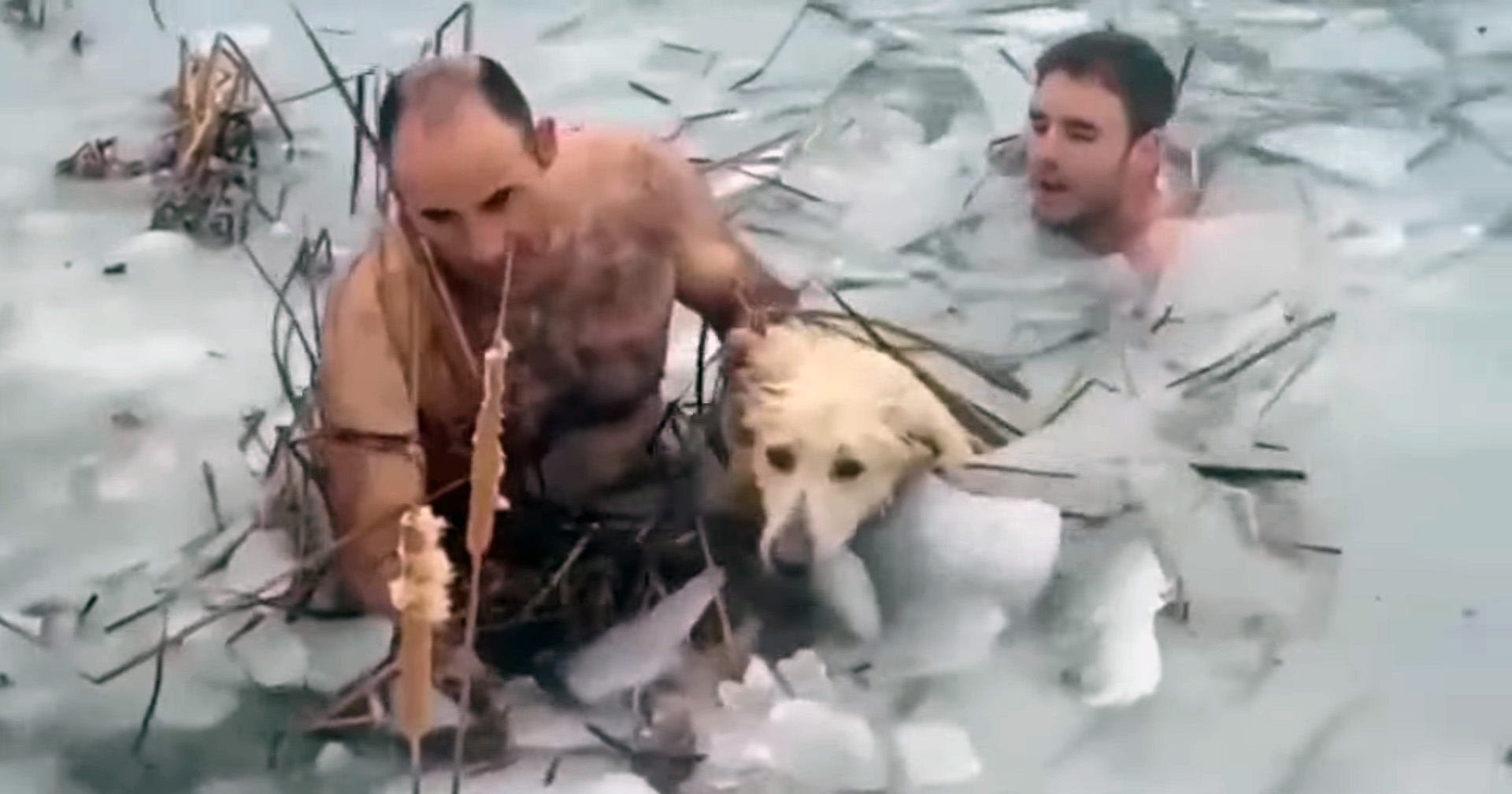 Drąsūs policininkai šoka į ledinį, stingdantį vandenį, kad išgelbėtų šunį