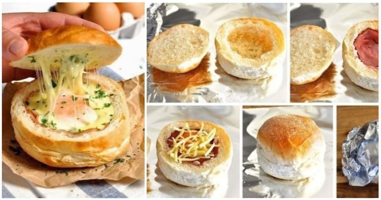 Karštos bandelės su kiaušiniu, sūriu ir kumpiu pusryčiams