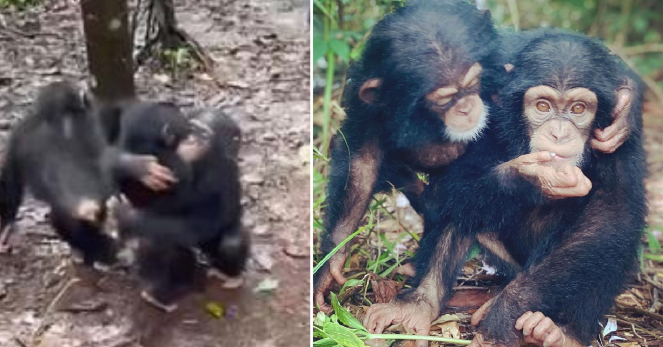 Šimpanzės prieglaudoje apkabino naujai atvykusią našlaitę