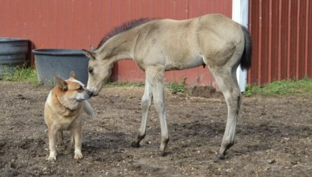 Neįtikėtina meilė: šuo rūpinasi našlaičiu tapusiu kumeliuku
