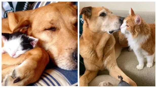 Savo jauniklių netekusi katė pradėjo rūpintis naujagimiais šuniukais
