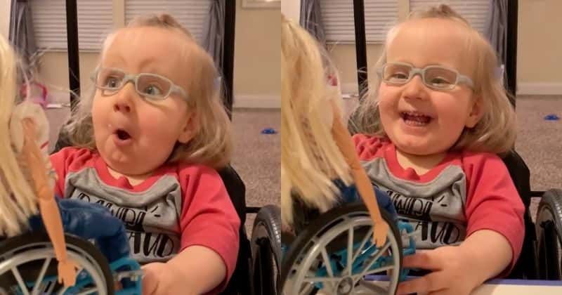 Dviejų metų Ella nušvito, kai gavo Barbę sėdinčią neįgaliųjų vežimėlyje – visai kaip ji!
