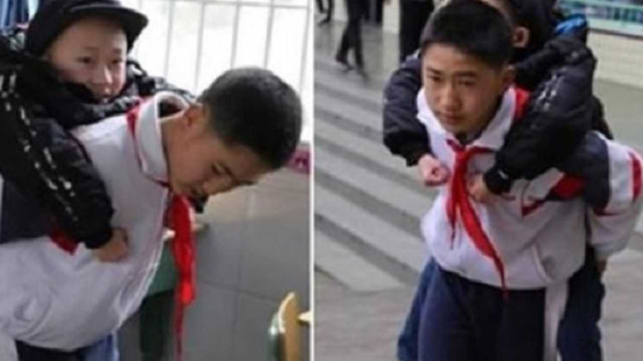 Pastaruosius šešerius metus 12 metų berniukas kasdien atneša į mokyklą savo neįgalų draugą