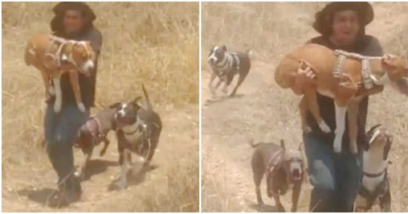 Vyras lakstė su šunimi, laikydamas jį ant rankų, todėl šuo vis dar galėjo pažaisti su savo broliais ir seserimis