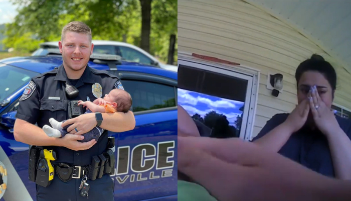 Kamera užfiksavo momentą, kai policininkas išgelbėjo 3 savaičių kūdikio gyvybę
