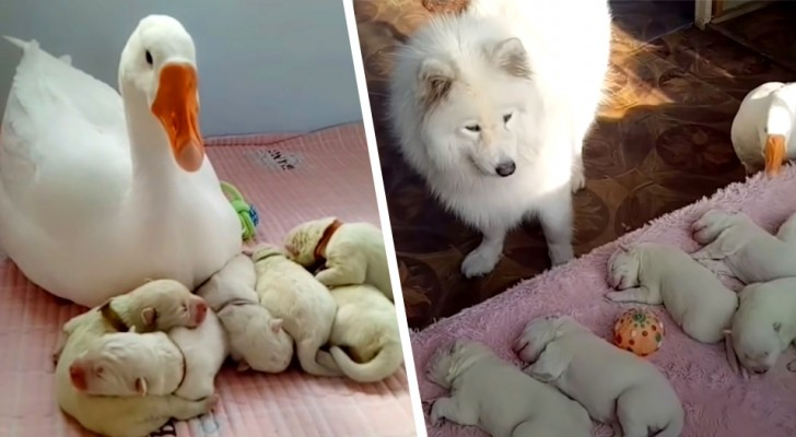 Šuo neseniai atsivedė daug šuniukų ir sulaukė pagalbos iš netikėtos auklės
