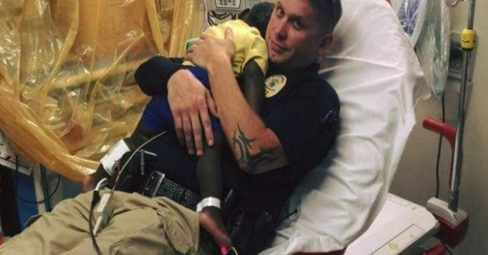 Policininkas su vaiku rankose buvo nufotografuotas ligoninės lovoje. Ši istorija sužavėjo daugelį!