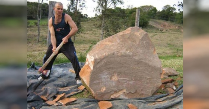 Jis mosuoja kirviu prieš didelį akmenį sode. Koks bus galutinis rezultatas? Tiesiog nuostabu!