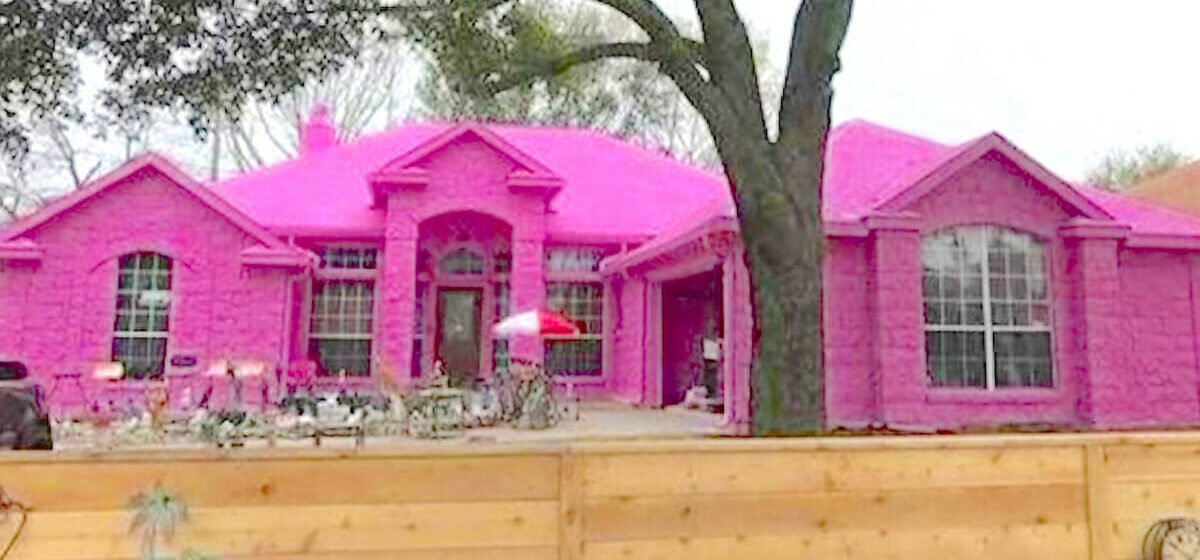 Vyras pasistatė savo svajonių namą ir papiktino kaimynus, nes nudažė jį ryškiai rožine spalva