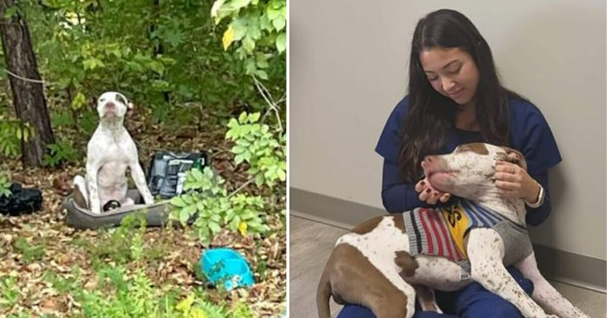 Jaunas šuniukas su sulaužyta koja buvo paliktas likimo valiai miške: laimei, jį rado geraširdis žmogus