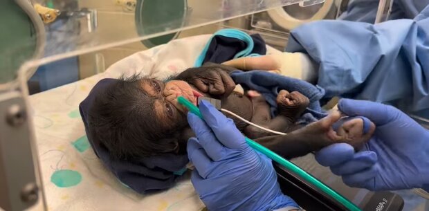 Pirmasis susitikimas: beždžionė motina pamato savo mažylį po skubaus cezario pjūvio