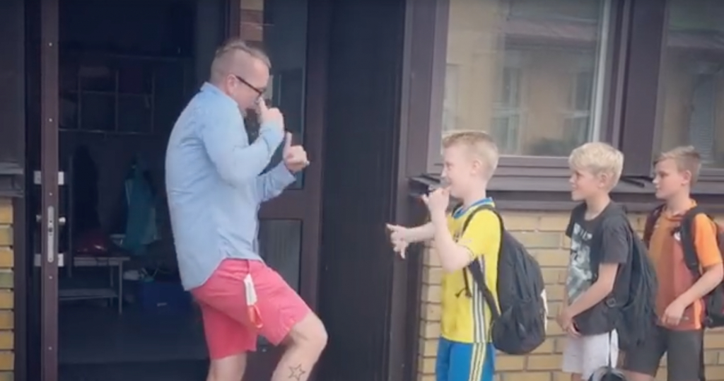 Mokytojas iš Švedijos turi labai ypatingą būdą pasisveikinti su savo mokiniais