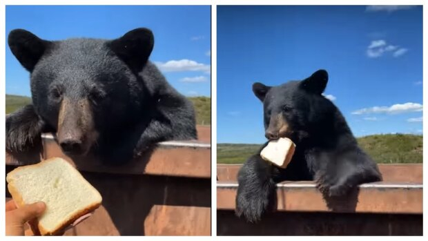 „Negalėjau atsispirti“: mergaitė pasidalino sumuštiniu su lokiu