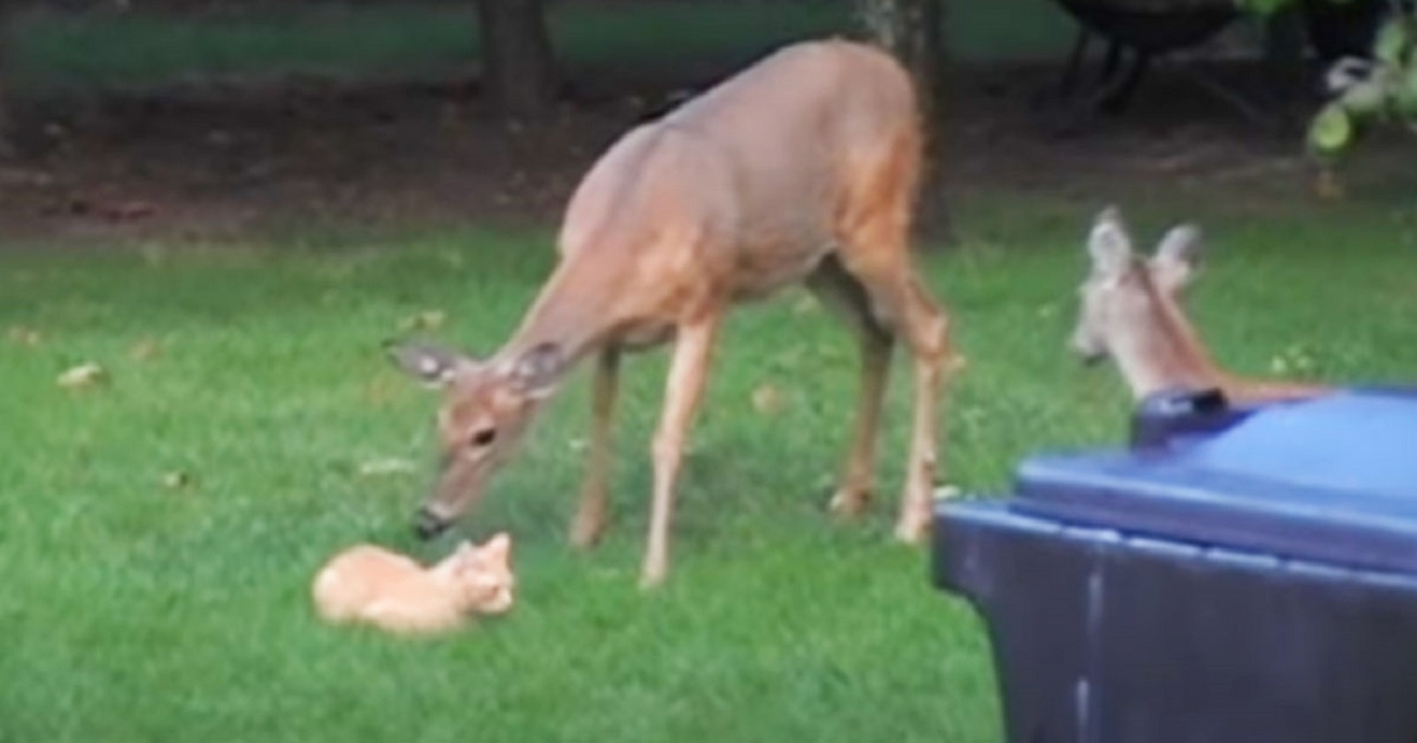 Elniukas pasilenkia lyžtelėti katę, bet sulaukia šaltos reakcijos – žiūrėkite šio susitikimo vaizdo įrašą