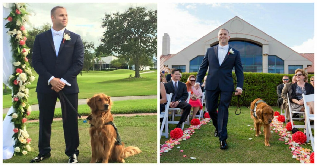 Auksaspalvis retriveris karo veterano vestuvėse tapo garbės svečiu