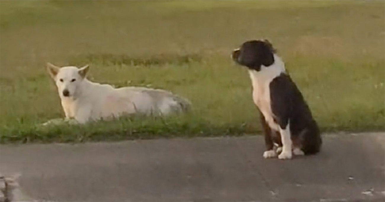 Ištikimas valkataujantis šuo saugojo savo keturkojį draugą, kurį partrenkė automobilis