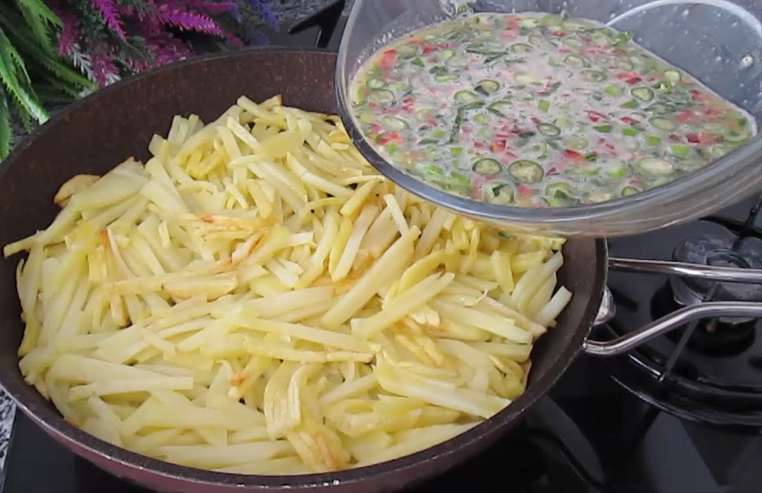 Greitai keptuvėje paruošiamas bulvių pyragas. Puikus ir sotus patiekalas, kuris visiems patiks!
