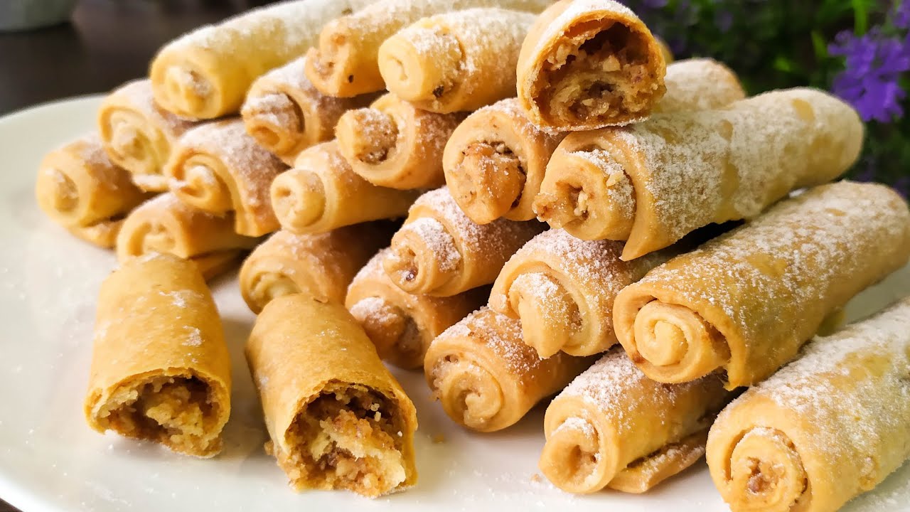 Naminiai trapios tešlos šiaudeliai su riešutų įdaru