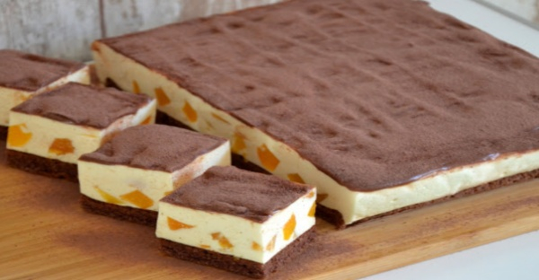 Tiesiog supilkite tešlą į kepimo skardą, įdėkite vaisių ir grietinėlės. Ir kreminis persikų pyragas paruoštas!