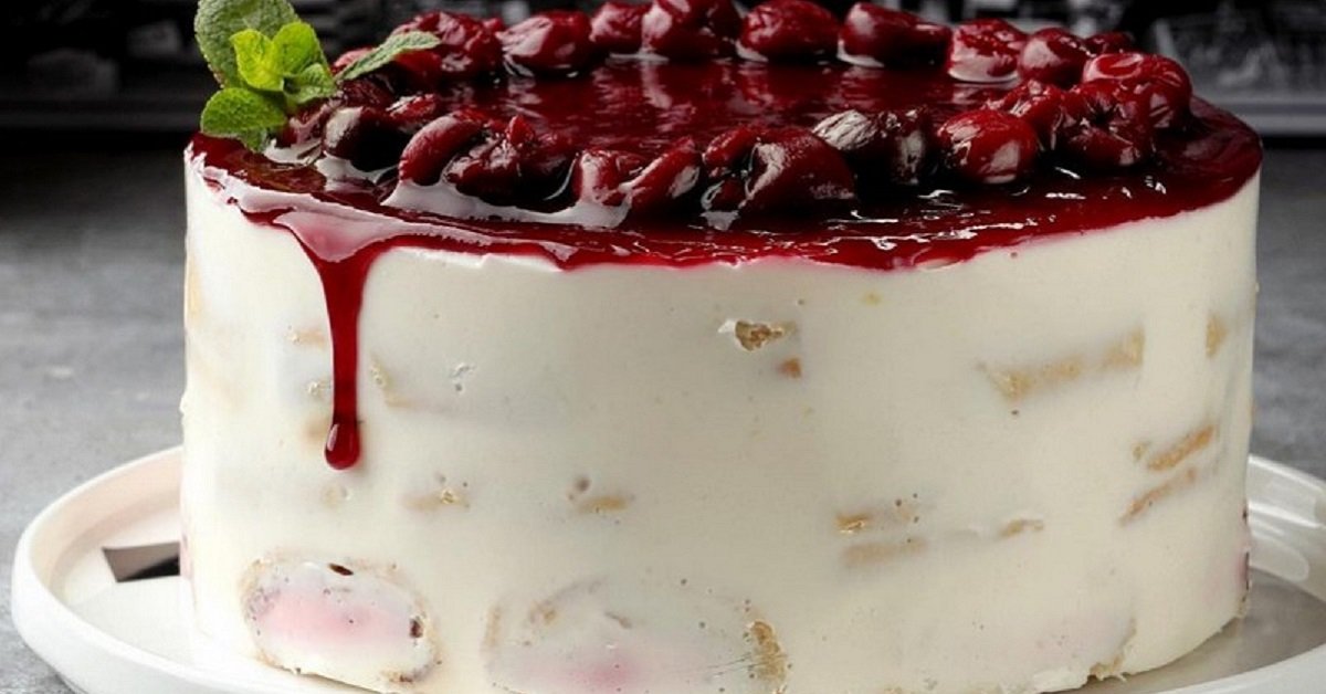 Daugiasluoksnis tortas su vyšniomis ir grietinės kremu
