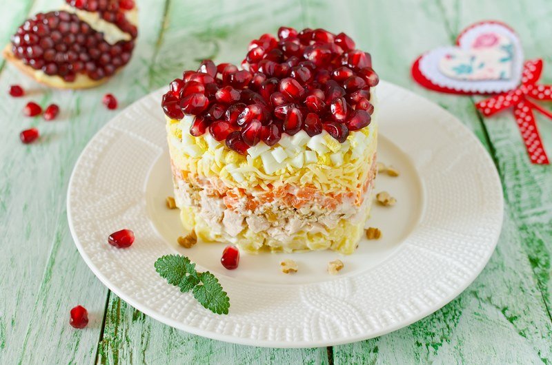 Salotos su granatais ir vištiena. Gaivus ir subtilus skonis!